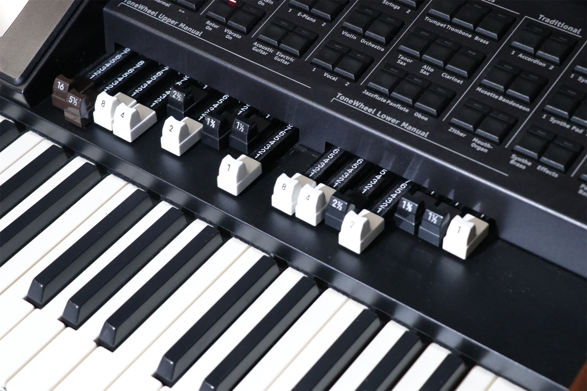 Ober- und Untermanual mit 61 Tasten-Tasten, leicht gewichtet m. Anschlagdynamik