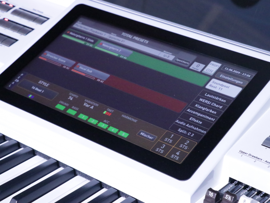 Über die hochwertige Tastatur mit 76-Tasten können Sie bis zu 16 Klangfarben auf der Tastatur verteilen. Über eine ausgereifte Dynamik und der Aftertouch-Funktion, verleihen Sie den Klangfarben den letzten Schliff.