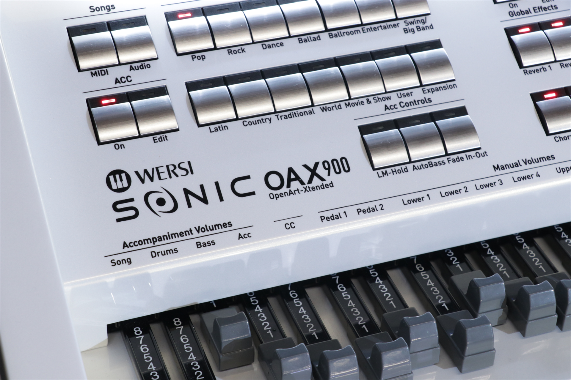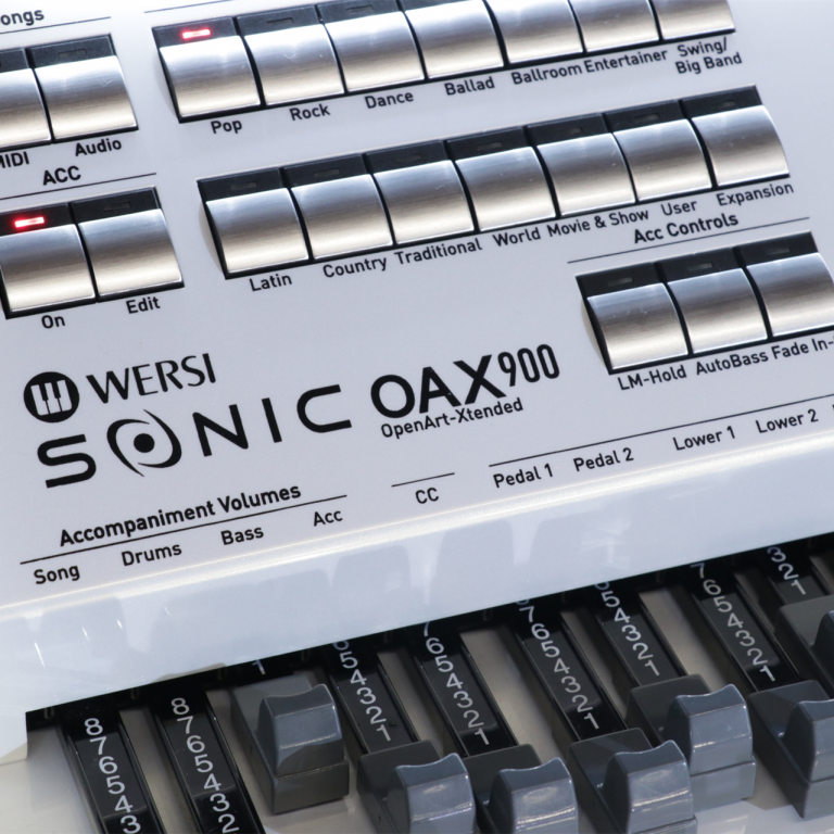 Die OAX800 steht in der Tradition berühmter Vorgänger, und wird selbst schon bald zu einer Ikone werden. Denn nicht umsonst ist die OAX800 das bevorzugte Instrument von Profi-Organisten. Dieses exklusive Instrument bietet heute das Machbare an Klangqualität und Spielmöglichkeiten, und das in einer Intensität, die jeden kreativen Musikliebhaber einfach begeistert! Egal, ob Sie klassische Musik, die große Kirchenorgel, Unterhaltungsmusik oder die neuesten Chartstürmer mit pulsierenden Beats und Synthesizerklängen auf Ihrer Orgel spielen möchten: Ihre OAX800 macht alles mit und lässt Ihr Spiel auf höchstem klanglichen Niveau erklingen. Über zwei große Manuale mit 76 Tasten, beide anschlagdynamisch und mit Aftertouch spielbar, ein anschlagsdynamisches Vollpedal mit 25 Tasten und das intuitive Bedienfeld mit dem großen zentralen 13.3‘‘ Touch-Display dirigieren Sie ihr Orchester, ihre Bigband, ihre Jazzcombo oder ihre Rockgruppe in Echtzeit während des Spielens. Genießen Sie ein musikalisches Erlebnis, wie es eben nur eine Orgel bieten kann - bei der WERSI SONIC OAX800 in höchster Vollendung!