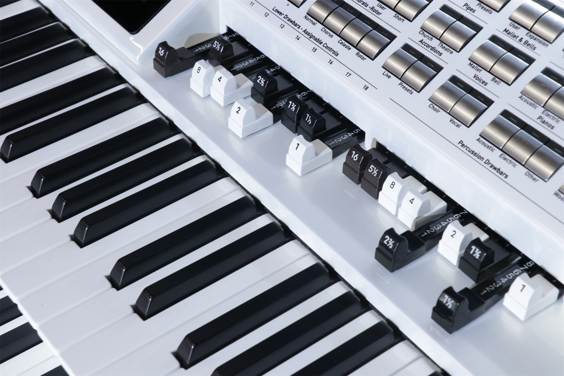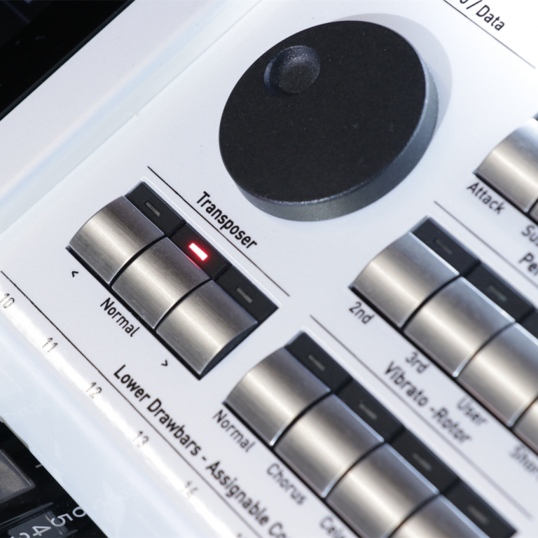 Ober- und Untermanual mit jeweils 76 Tasten, leicht gewichtet m. Anschlagdynamik