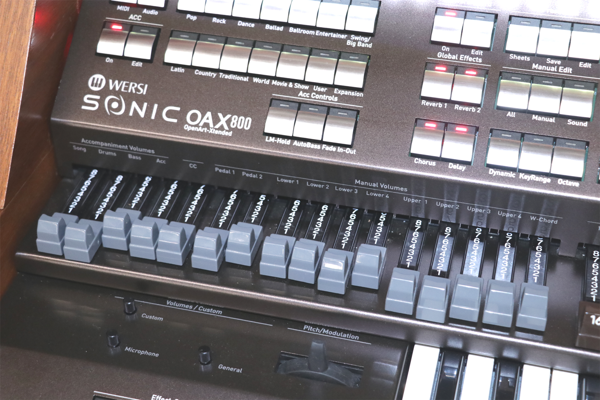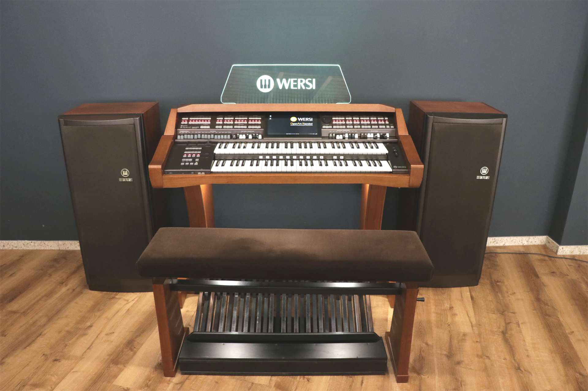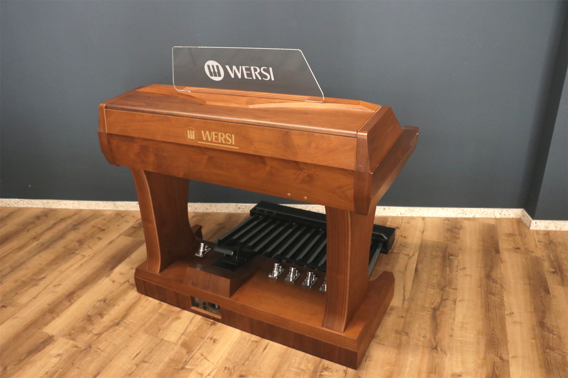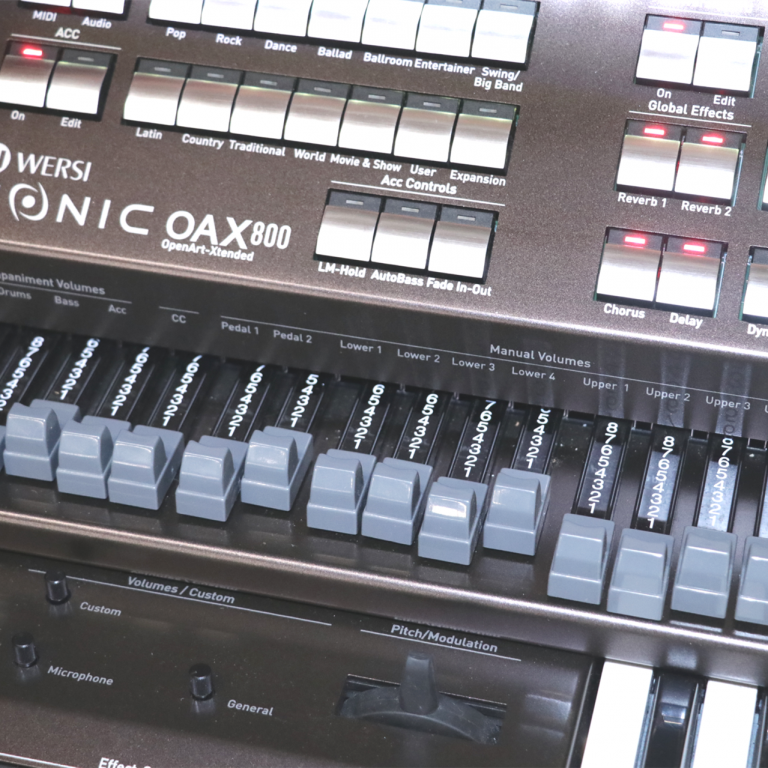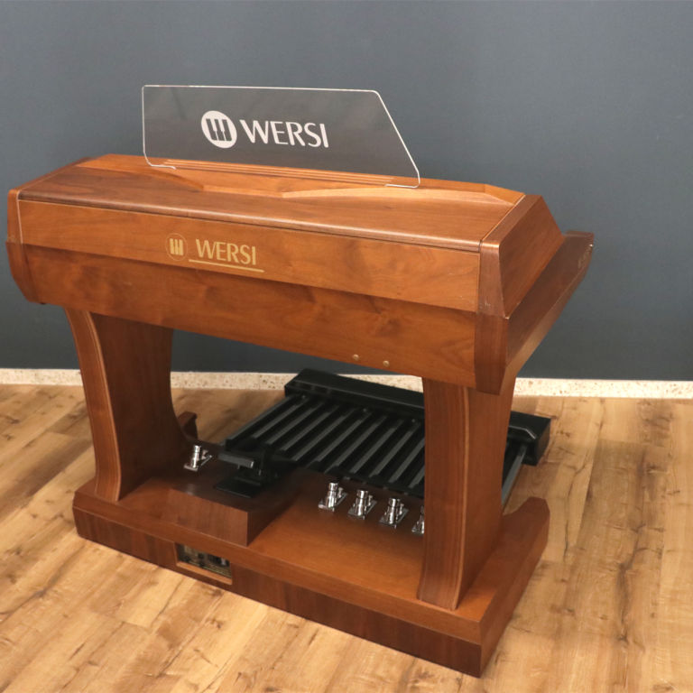 Dieses Instrument hat eine lange Geschichte hinter sich. Das Gehäuse stammt aus dem Jahr 1990. Damals war es eine WERSI GalaCD900TH. 34 Jahre später wurde die Orgel auf eine OAX-800 umgerüstet. Bis auf das zeitlose Holzgehäuse in Nussbaum Echtholz-Furnier, wurde alles erneuert. Neue Bedienfelder, ein großes 11"-Touch-Display, neue Manuale und im Inneren die neueste PC-Technik sowie die neueste OAX-Software 3.0