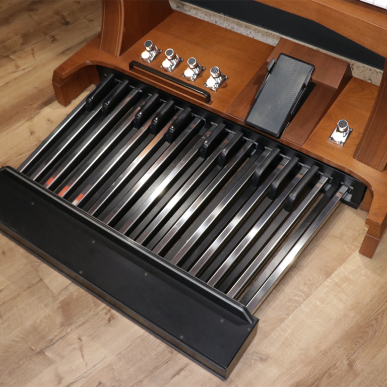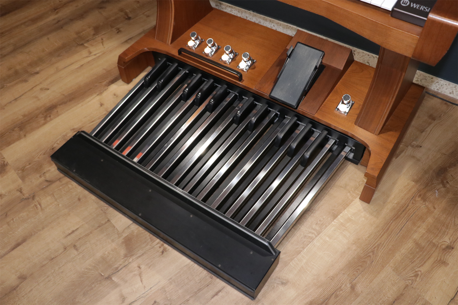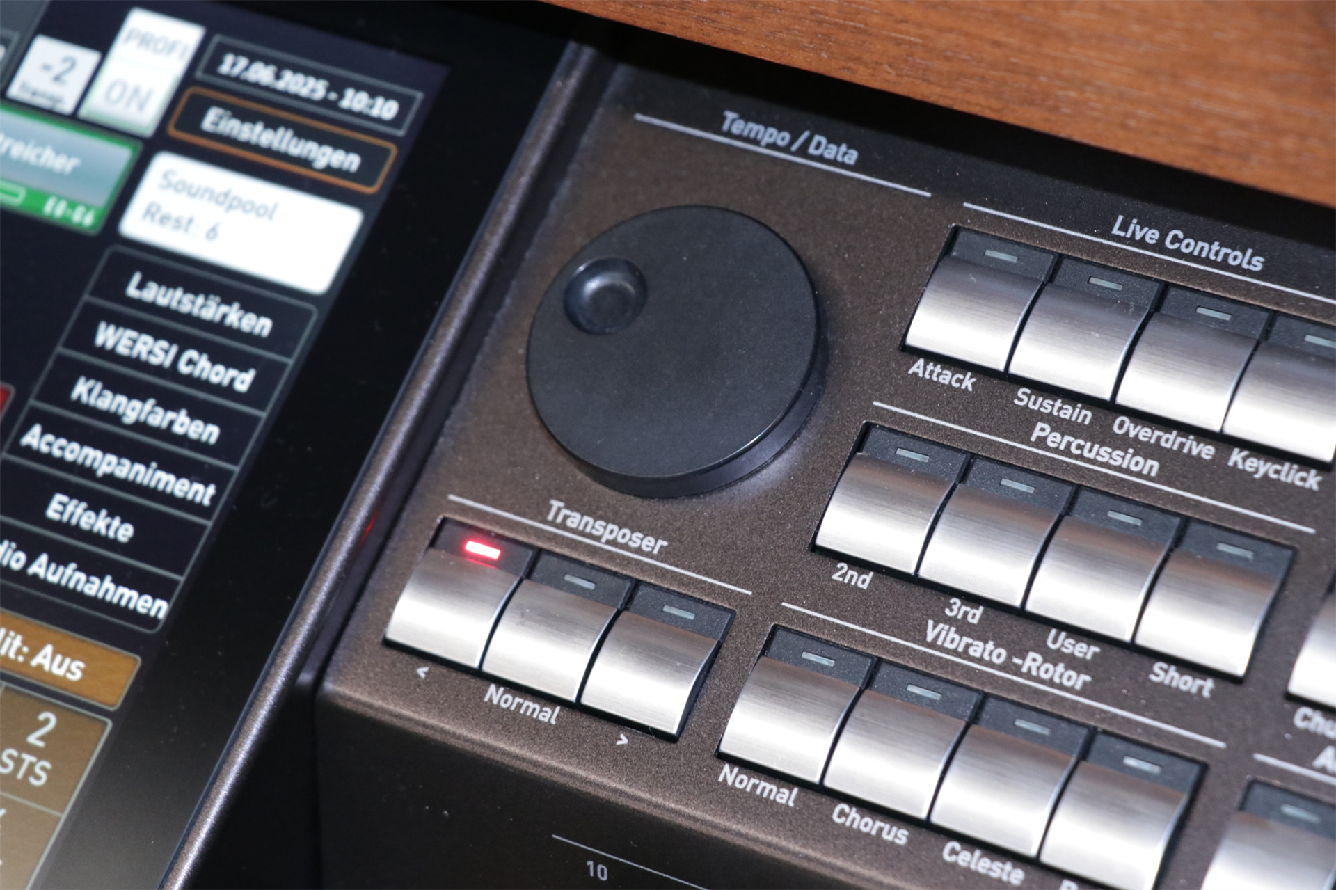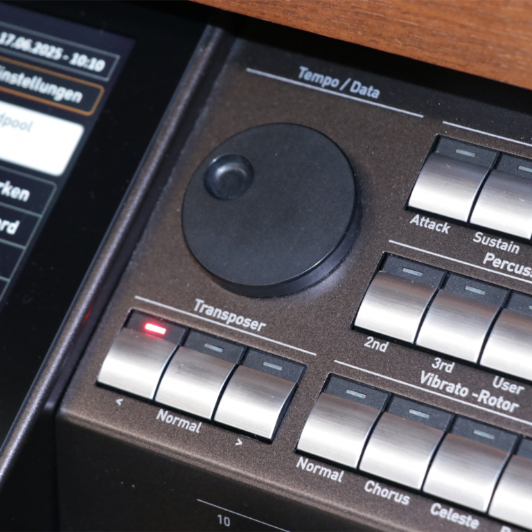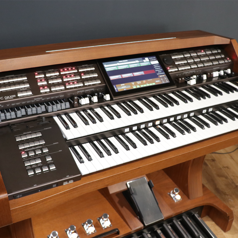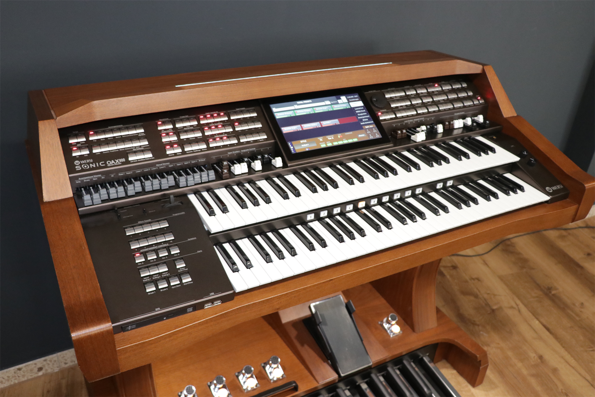 Dieses Instrument hat eine lange Geschichte hinter sich. Das Gehäuse stammt aus dem Jahr 1990. Damals war es eine WERSI GalaCD900TH. 34 Jahre später wurde die Orgel auf eine OAX-800 umgerüstet. Bis auf das zeitlose Holzgehäuse in Nussbaum Echtholz-Furnier, wurde alles erneuert. Neue Bedienfelder, ein großes 11"-Touch-Display, neue Manuale und im Inneren die neueste PC-Technik sowie die neueste OAX-Software 3.0