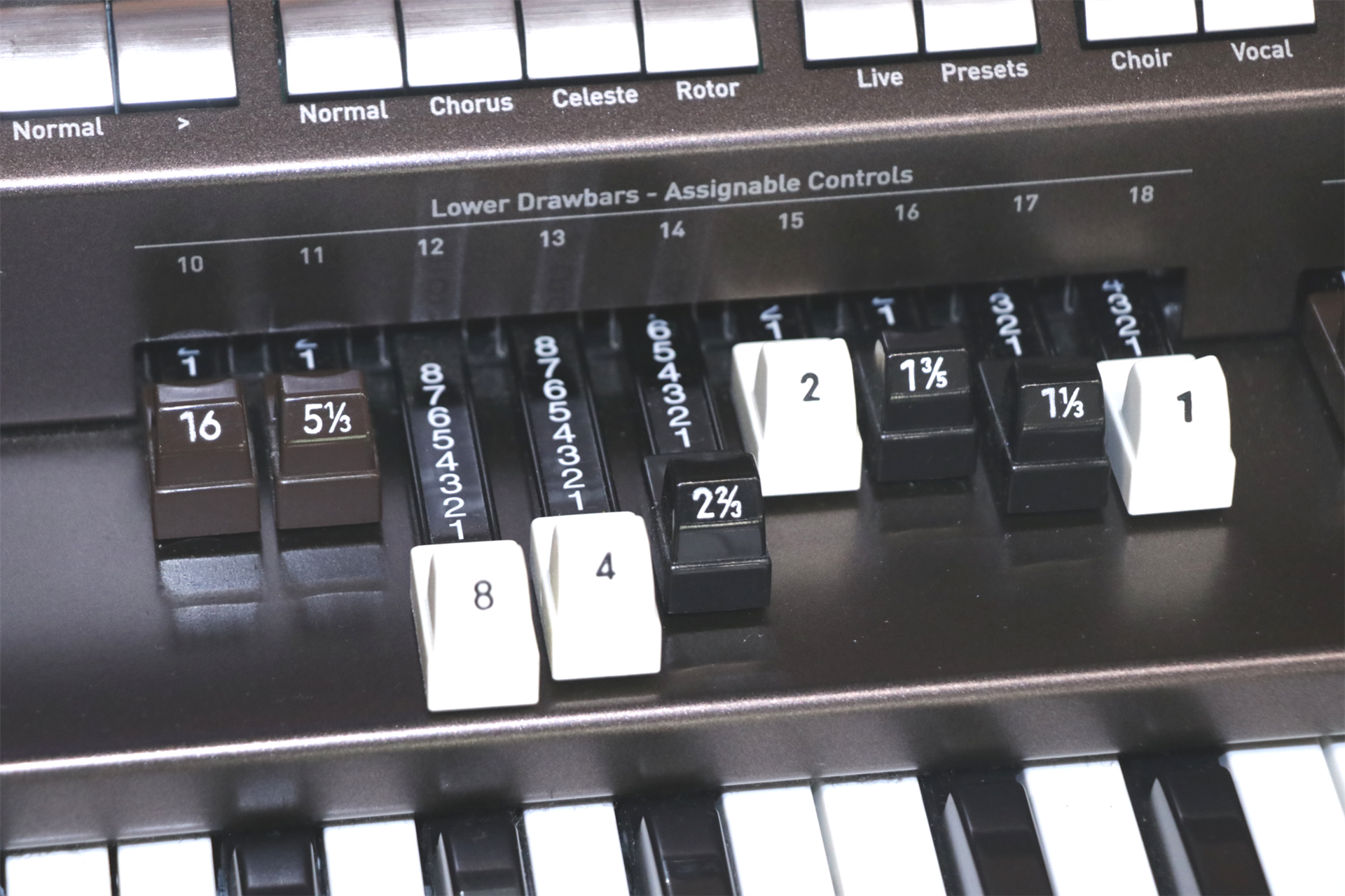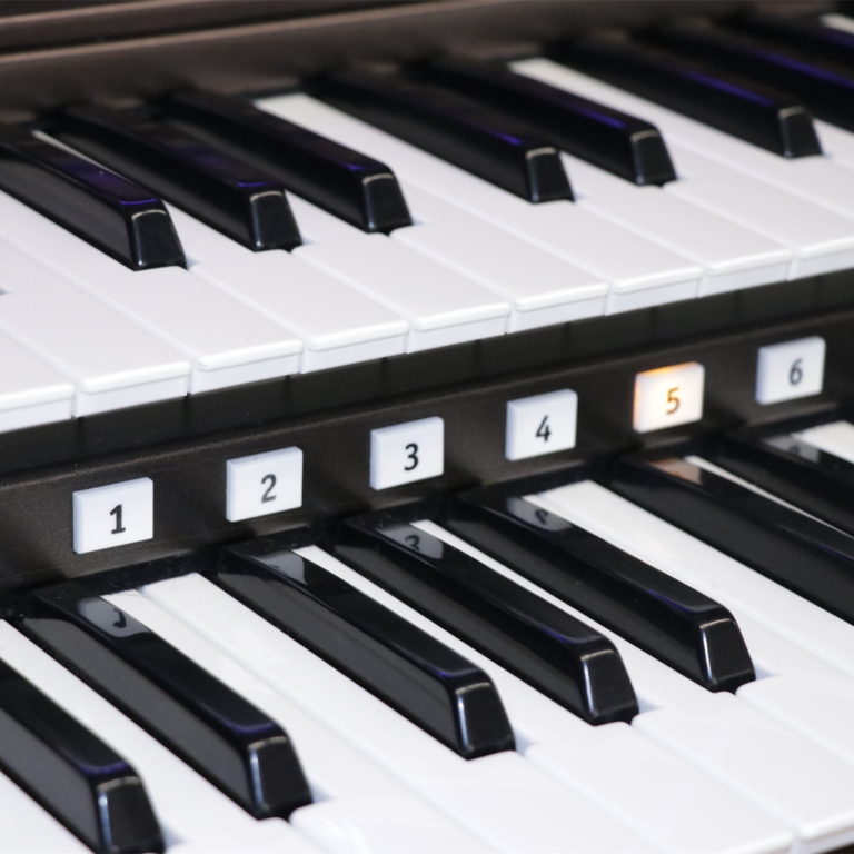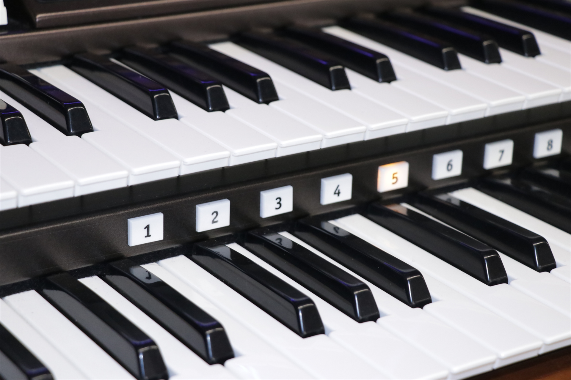 Ober- und Untermanual mit jeweils 61 Tasten, leicht gewichtet m. Anschlagdynamik