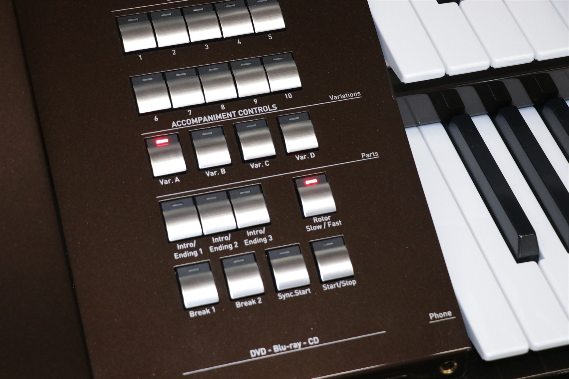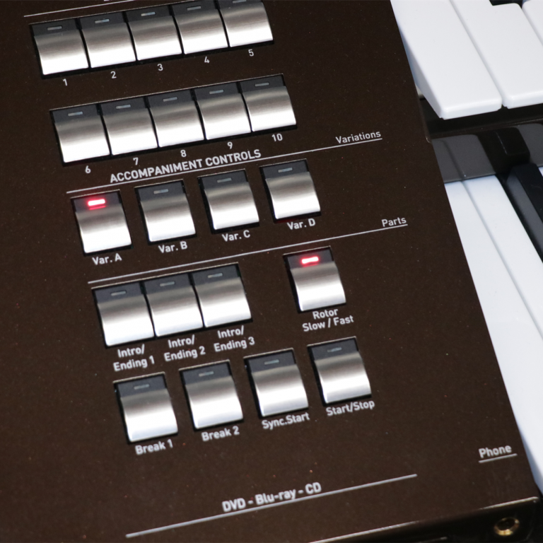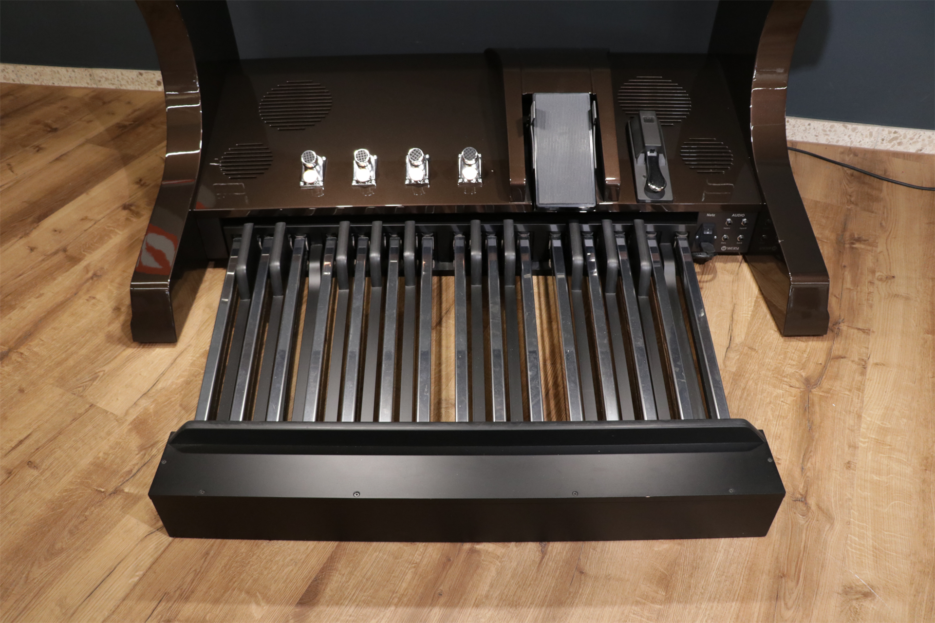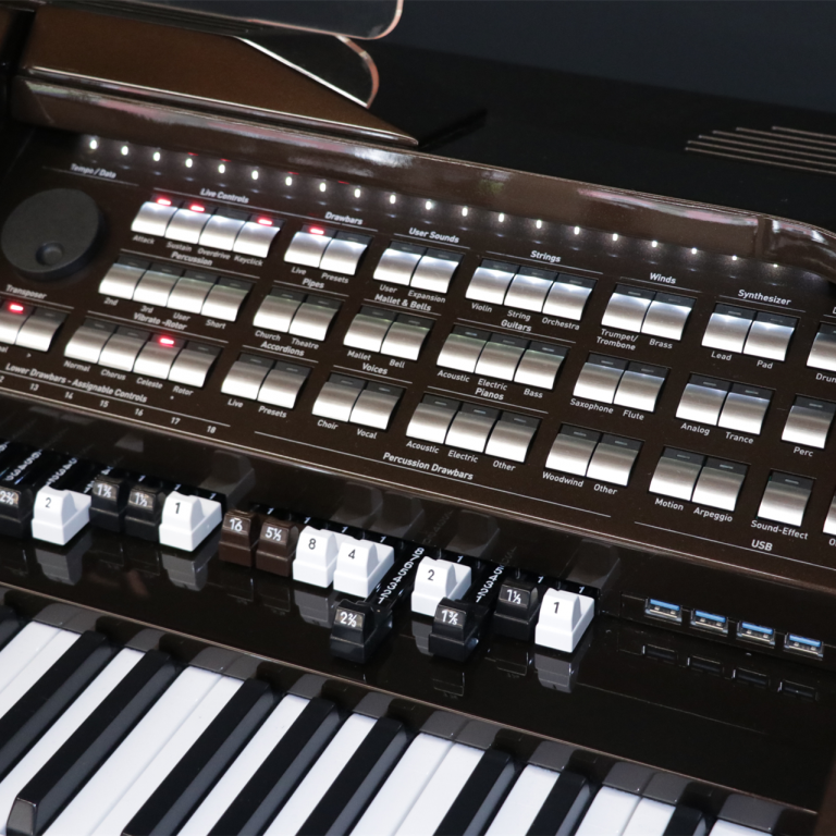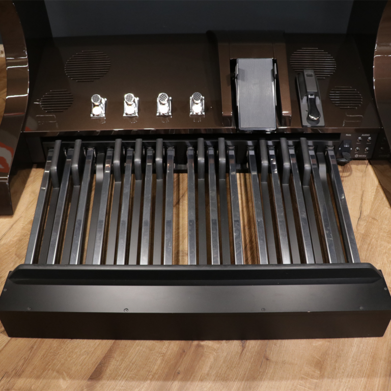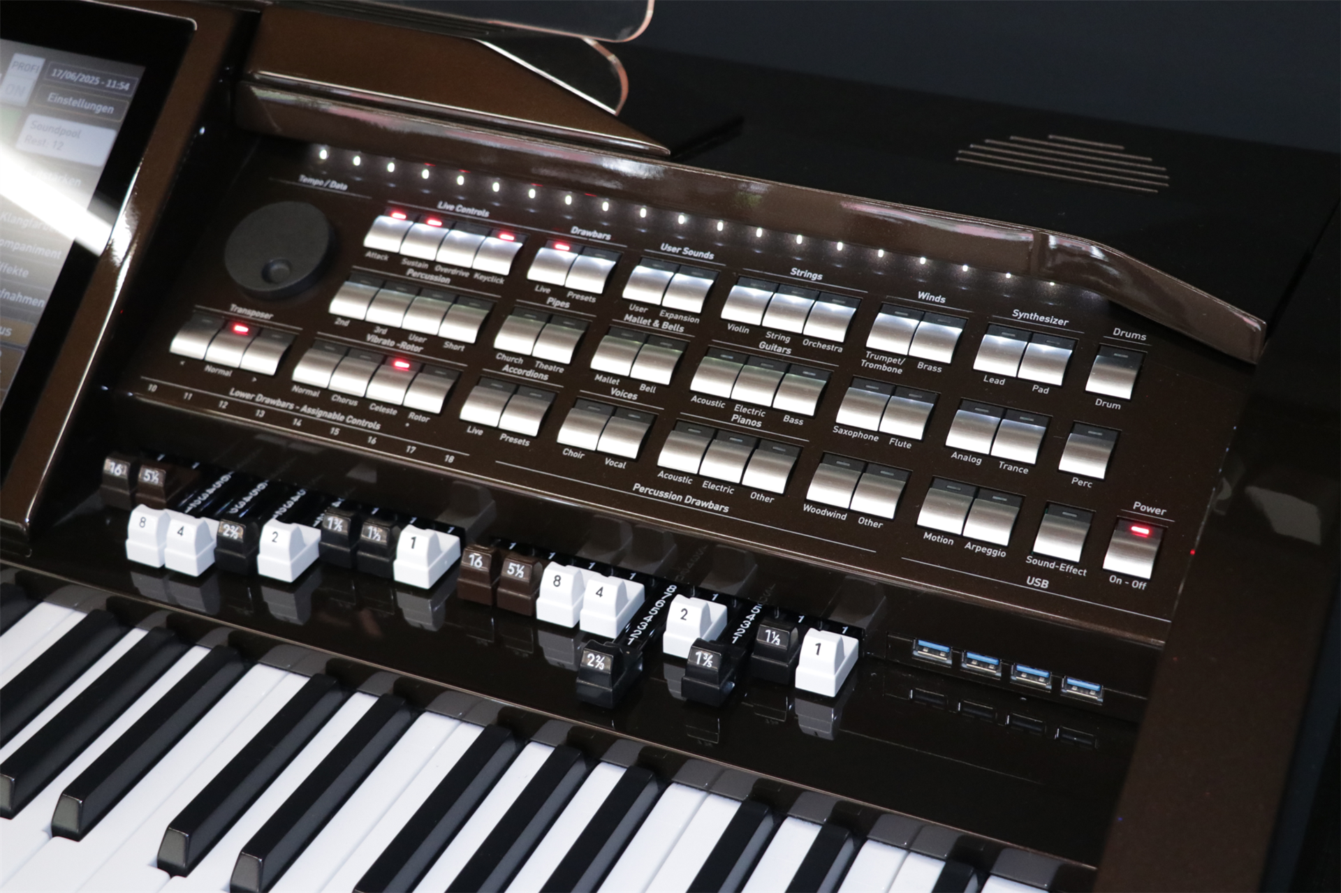 Solo- Ober- und Untermanual mit jeweils 76 Tasten, leicht gewichtet m. Anschlagsdynamik
