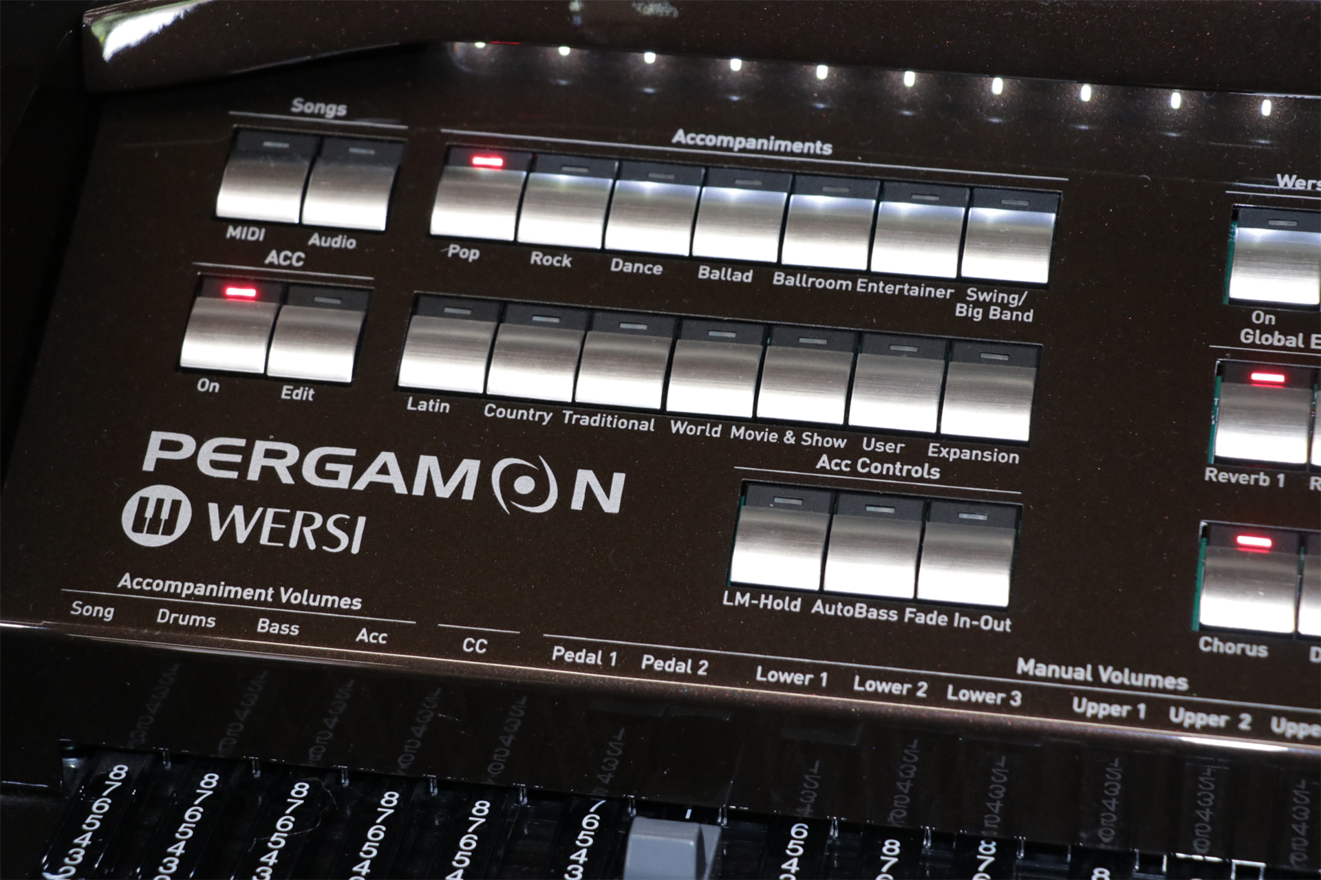 Die PERGAMAON OAX-1000LS bietet Ihnen alles, was das WERSI OAX-System zu bieten hat! Schöpfen Sie aus dem Vollen und genießen Sie musikalische Freiheiten, von denen sie bisher nur träumen konnten. Es gibt Orgeln – und es gibt die neue WERSI PERGAMON OAX1000! Mit ihrem eleganten, zeitlosen Design zieht die OAX-1000LS die Aufmerksamkeit auf sich, wird zum Mittelpunkt in Ihrem Wohnzimmer ebenso wie auf der Bühne!