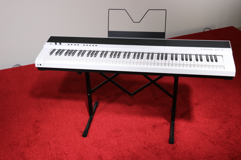 Das FAME SP-2 ist ein sehr schickes Stagepiano mit einer gewichteten 88 Tasten Hammermechanik-Klaviatur und einem kraftvollen 20 Watt Stereo Lautsprechersystem. Das gut spielbare Instrument richtet sich gleichermaßen an Einsteiger wie auch Profis und überzeugt 25 verschiedenen Sounds, die sich bei Bedarf mit Reverb und Chorus Effekten veredeln lassen und zahlreiche Stilistiken abdecken.